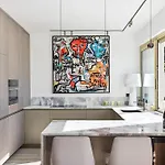- ❓Is there a kitchen available at the apartment for guest use?Yes, the apartment is furnished with an equipped kitchen and offers a microwave oven, an electric kettle, and a refrigerator as well.